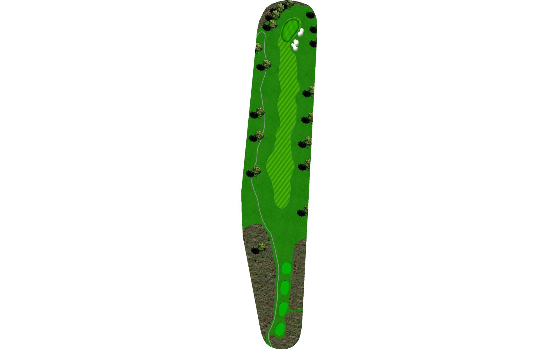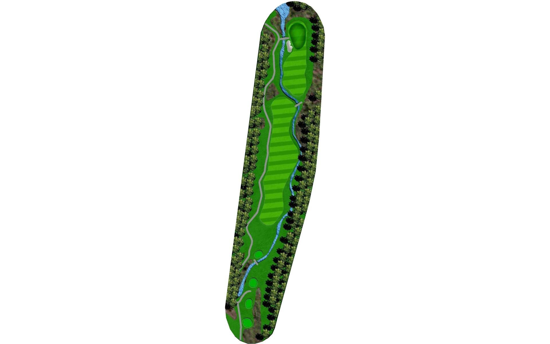 This long par 5 is flanked b the meandering stream. The water is right of the tee shot landing area, then crosses the fairway and must be c…