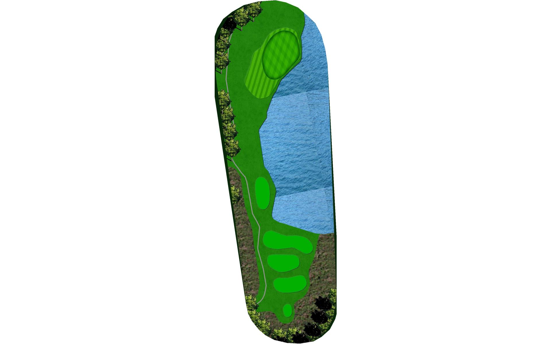 This par 3 is stubbornly guarded by a lake on the right. Bailing out left, away from the water, leaves you to face the anxiety of a difficu…